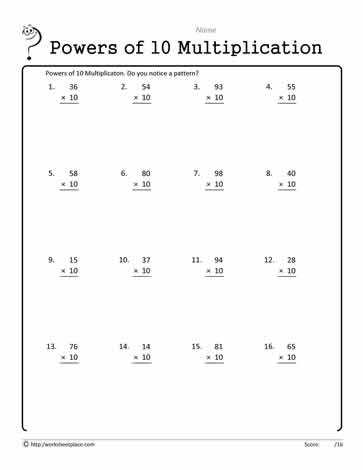 Math worksheets multiplying by 10